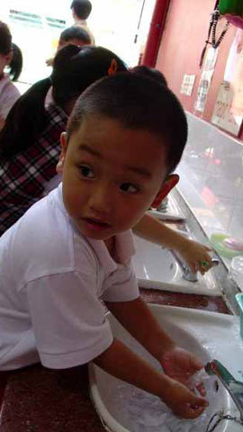 “Dù dịch tay chân miệng đang lây lan rất mạnh, nhưng tôi vẫn yên tâm cho con đi học vì cách làm vệ sinh của trường khá tốt. Mỗi lớp chỉ có hơn 10 học sinh. Bé Hùng đi học về kể trước khi ăn cơm và sau khi ăn xong đều được các cô hướng dẫn rửa tay bằng xà phòng” – chị Lan nói.