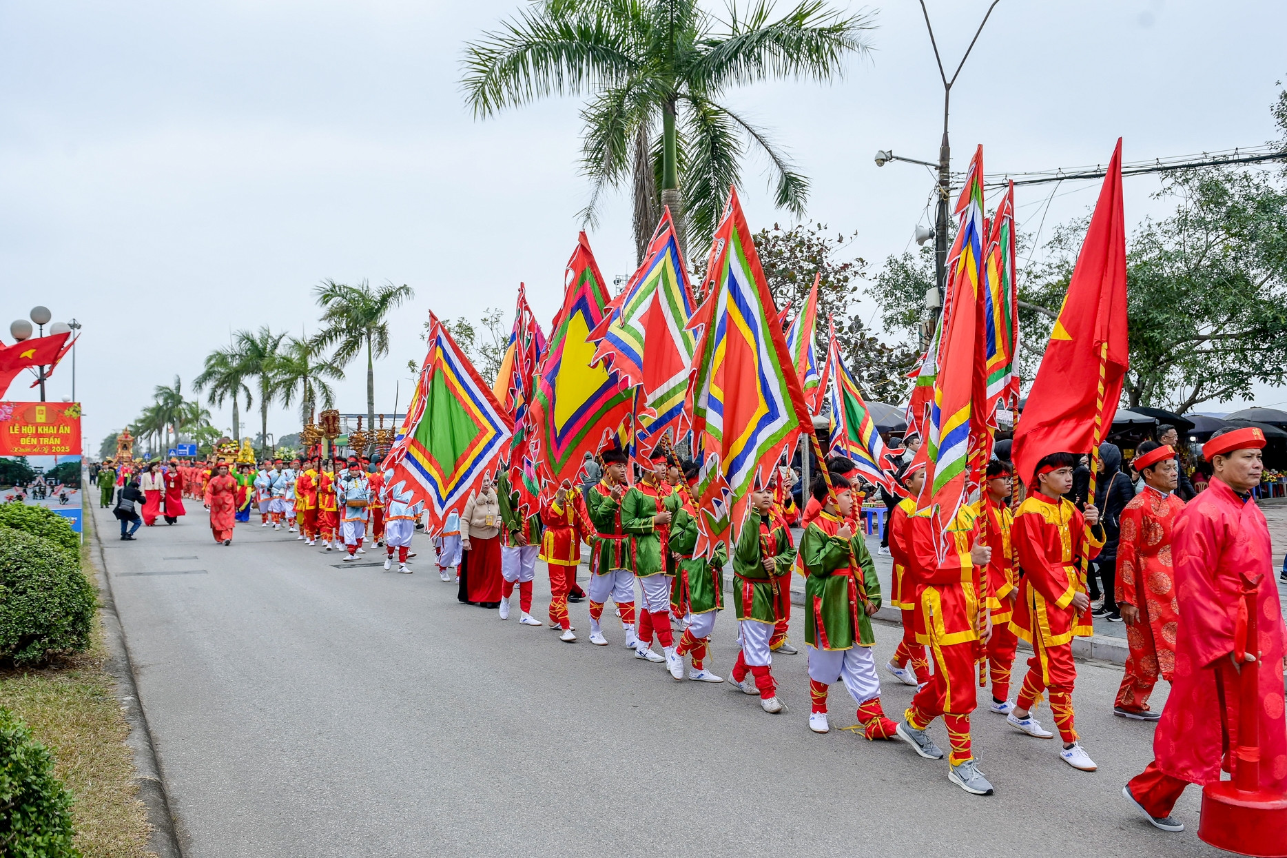 Em Ngô Thị Hảo vinh dự được cầm biển "Quan Thự vệ" đi đầu. Cháu gái của ông Ngô Trọng Bi ở xóm 3, khu 5, thôn Thụy Lôi cho biết cả dòng họ cố gắng càng nhiều người đi rước ông càng tốt. Vinh dự này không dễ gì có được vì trước đó phải tuyển chọn từ trong làng.