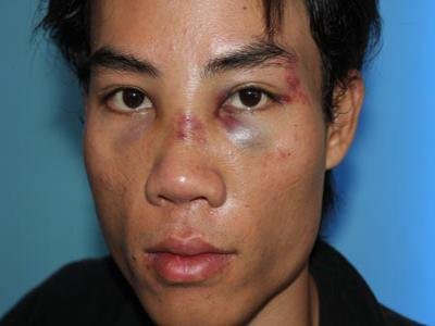 | Khuôn mặt anh Phi bị bầm dập nghiêm trọng (Ảnh: Dân Việt) |