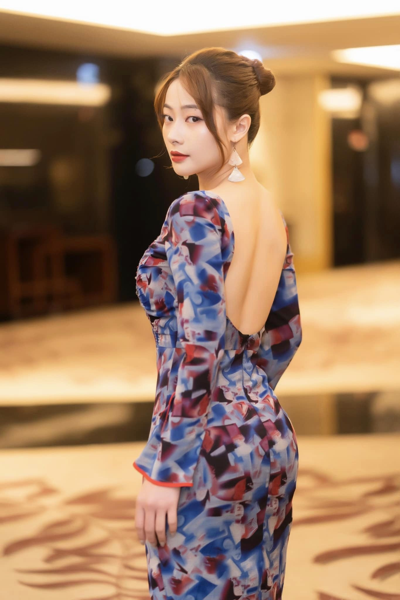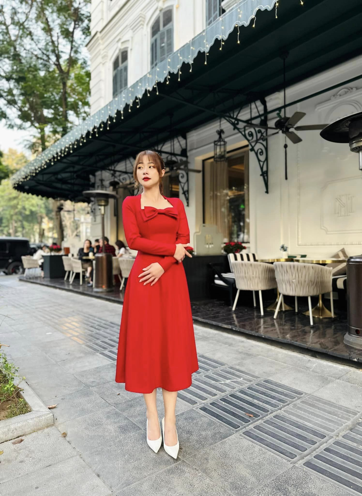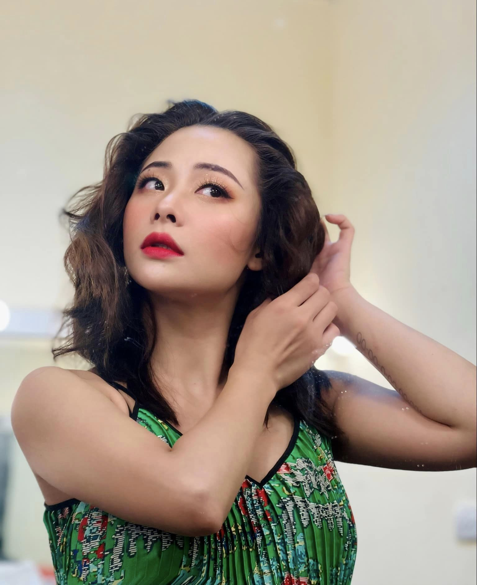 Ngoài những mẫu váy sexy, Huyền Thạch cũng thường xuyên lựa chọn những chiếc đầm nữ tính.