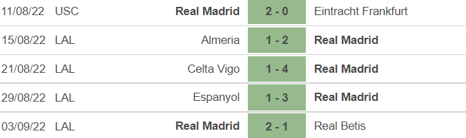 Cùng với 12 điểm tuyệt đối sau 4 vòng đấu La Liga, Real Madrid còn có trận thắng dễ Frankfurt ở Siêu Cúp châu Âu, danh hiệu thứ 4 mà đội giành được trong năm 2022.