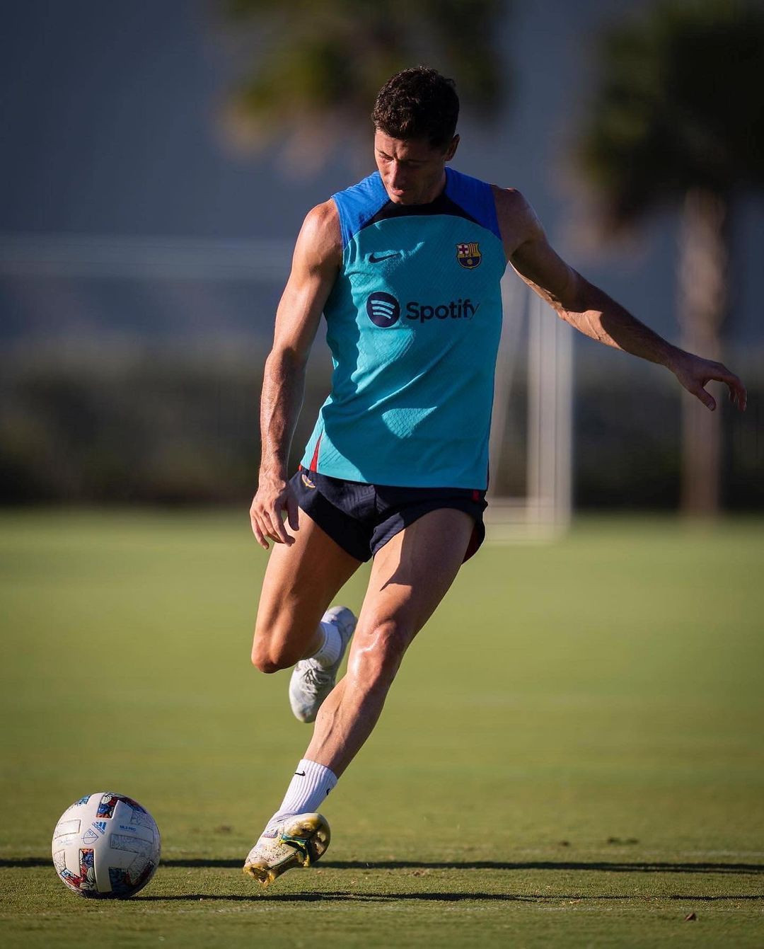 Sau nhiều ồn ào, cùng một số trở ngại về vấn đề thuế khiến thương vụ chuyển nhượng từ Bayern Munich chậm hơn dự kiến, Lewandowski cũng đã tập luyện với đồng đội mới.