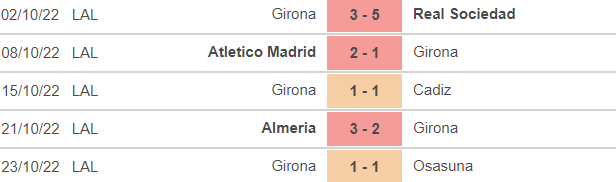 Girona đang xếp thứ 2 từ dưới lên với chỉ 2 chiến thắng từ đầu mùa. Đội bóng xứ Catalunya không thắng trong 6 trận gần nhất, với 4 trong đó là thất bại.