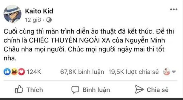 Về nội dung đề thi, theo thầy Minh, phần đọc hiểu cho một đoạn trong “Con đường của những vì sao” của Nguyễn Trọng Tạo.