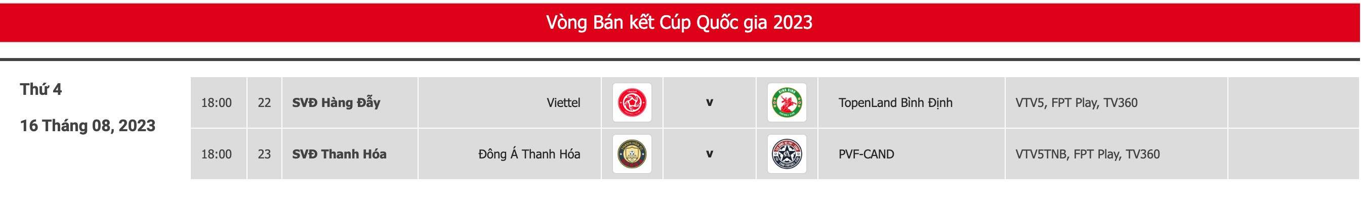 Ở trận bán kết còn lại, Thanh Hóa được đánh giá cao hơn PVF - CAND, nhưng bất ngờ vẫn có thể xảy ra khi đội bóng xứ Thanh có phong độ không tốt, liên tục thua ở những vòng đấu gần đây tại V-League 2023. Ngoài ra, PVF-CAND có thể "gồng" ở Cup Quốc gia, giống như một sự bù đắp nếu họ không thể giành vé thăng hạng V-League khi đang thất thế so với đối thủ Quảng Nam trong giai đoạn cuối giải hạng Nhất 2023.