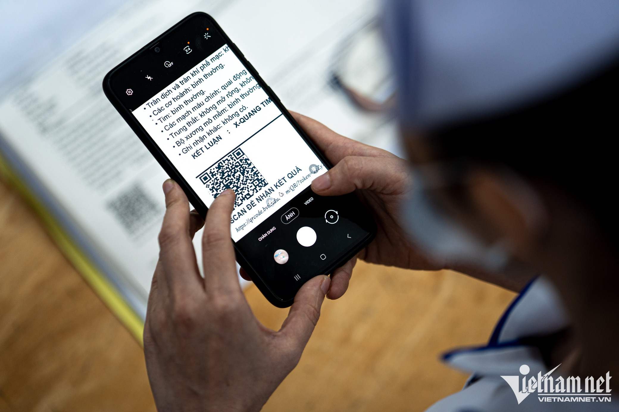 Đặc biệt, cơ sở này đã kết nối máy chụp chẩn đoán hình ảnh với hệ thống quản lý. Đây là hệ thống không phim, truyền tải dữ liệu, trả kết quả trên máy tính. Bác sĩ Nguyễn Triệu Vũ tự tin chỉ vào mã QR trên hồ sơ và cho biết người bệnh chỉ cần vài giây quét mã trên điện thoại để nhận được kết quả chụp X-quang hoặc CT.