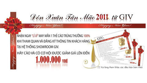 Ông David La - Giám đốc điều hành của GIV cho biết, “Năm 2010 là một năm tuyệt vời của GIV, và chúng tôi muốn chia sẻ điều này với các khách hàng của chúng tôi những khách hàng thân thiết và khách hàng trong tương lai. Khách hàng có thể sử dụng để mua đồ trang sức ngay như một món quà năm mới hoặc có thể tặng cho bạn bè sẽ mua đồ trang sức của chúng tôi.”