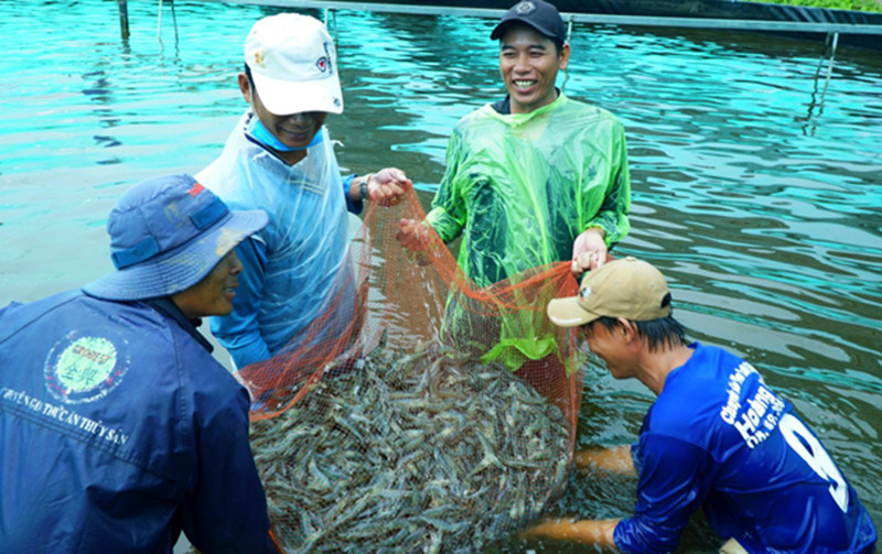 Còn hộ ông Đỗ Hải Đăng, ấp Vĩnh Lập, xã Vĩnh Thịnh (huyện Hoà Bình, tỉnh Bạc Liêu) tham gia dự án, thực hiện mô hình trình diễn tôm sú thâm canh, bán thâm canh. Với thời gian nuôi 155 ngày, gia đình ông Đăng thu hoạch hơn 1.500 kg tôm sú, cỡ tôm thu hoạch 25 con/kg, giá bán 245.000 đồng/kg, doanh thu hơn 367 triệu đồng, sau khi trừ hết chi phí, hộ gia đình ông Đăng còn lãi hơn 237 triệu đồng.
