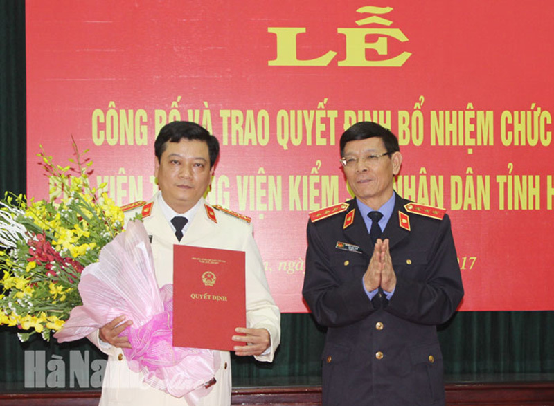 VKSNDTC: Ngày 13/11, Phó Viện trưởng Viện KSNDTC Lê Hữu Thể đã trao quyết định bổ nhiệm Viện trưởng Viện KSND TP Phủ Lý, tỉnh Hà Nam Trần Thế Kính giữ chức vụ Phó Viện trưởng Viện KSND tỉnh Hà Nam kể từ ngày 15/11.