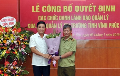 Phó Chủ tịch UBND tỉnh Vĩnh Phúc Vũ Việt Văn chúc mừng tân Cục trưởng Cục Quản lý thị trường tỉnh Vĩnh Phúc |