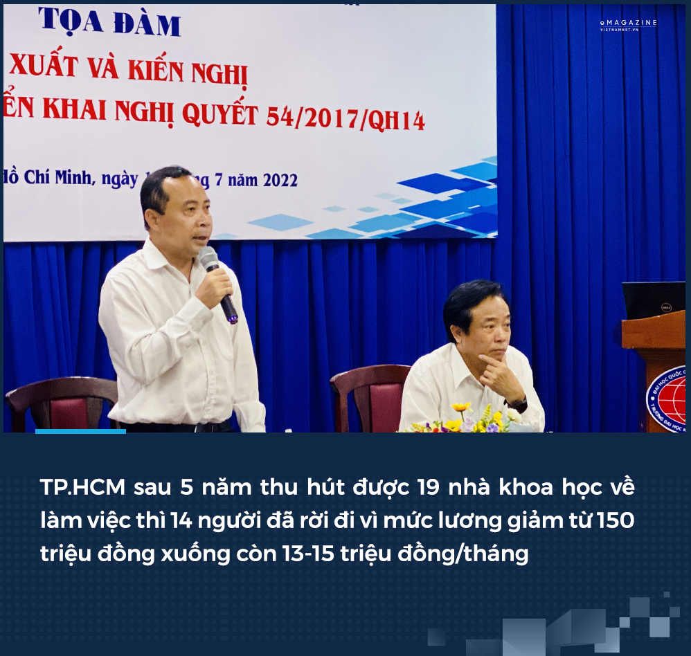 Ông dẫn chứng, trong 5 năm thí điểm, TP.HCM thu hút 19 nhà khoa học về làm việc, nhưng sau đó 14 người rời đi đã phản ánh điều đó.