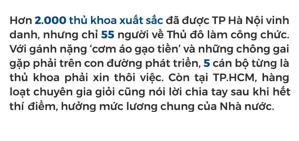 “Ưu ái’ sinh viên thủ khoa xuất sắc là vậy, nhưng Hà Nội vẫn gặp khó trong việc tuyển dụng nhân tài. Cụ thể, so với số thủ khoa xuất sắc được tuyên dương mỗi năm khoảng 100 người, chỉ hơn 5% trong số này về đầu quân cho Hà Nội.