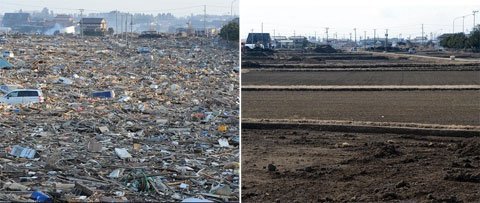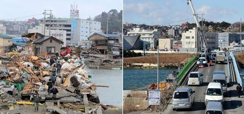 Còn ở Ishinomaki, một chợ cá cũng hoạt động trở lại và các ngư dân nơi đây có thể đi biển bằng những con thuyền vừa sắm. Nhưng ở Otsuchi, rác vẫn chất chồng thành từng đống và những ngôi nhà chỉ còn trơ khung lác đác nổi lên giữa đống hoang tàn.