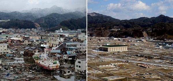 Dưới đây là một số hình ảnh Nhật Bản ngay sau động đất - sóng thần và ngày nay: