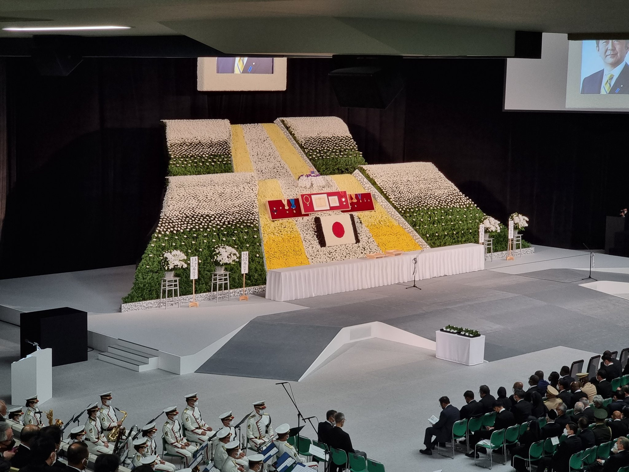 Tang lễ của cựu Thủ tướng Abe Shinzo đã chính thức bắt đầu khi phu nhân Akie đưa chiếc hộp gỗ đựng lọ tro cốt của chồng bà vào nơi tổ chức tang lễ. Các binh sĩ Nhật Bản đã bắn 19 phát đại bác trong lúc tro cốt ông Abe được đưa vào tòa nhà Budokan.