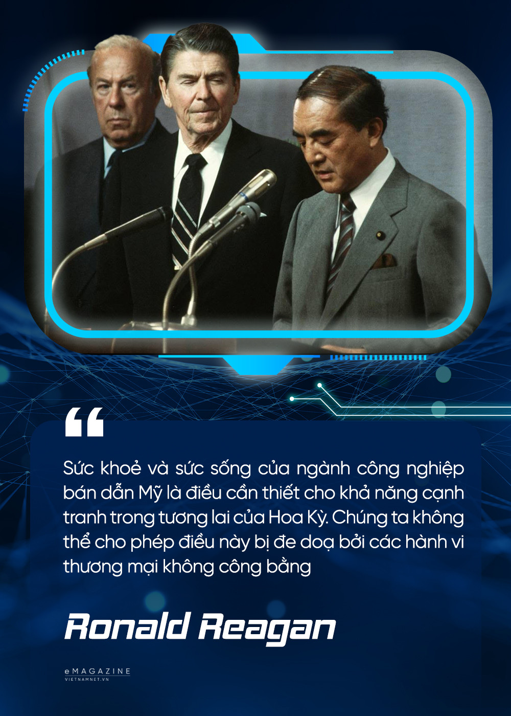 Những lời lẽ và hành động này làm gợi nhớ đến bối cảnh của cuộc chiến thương mại Trung-Mỹ ngày nay và cuộc cạnh tranh bán dẫn khốc liệt đang diễn ra giữa hai cường quốc. Đây không phải là tuyên bố của Biden hay Trump, nó không được sử dụng dùng để nhắm tới Trung Quốc. Đó là tiếng nói của Tổng thống Ronald Reagan khi lên tiếng mạnh mẽ trước quyền lực công nghệ ngày càng tăng của Nhật Bản vào năm 1987. Khoảnh khắc này đánh dấu sự bắt đầu của cuộc chiến thương mại bán dẫn đầu tiên giữa hai cường quốc chip thời đó.