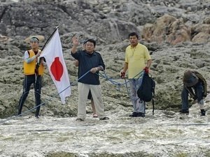 Các nhà hoạt động Nhật Bản cắm cờ trên quần đảo tranh chấp với Trung Quốc. Ảnh: Reuters