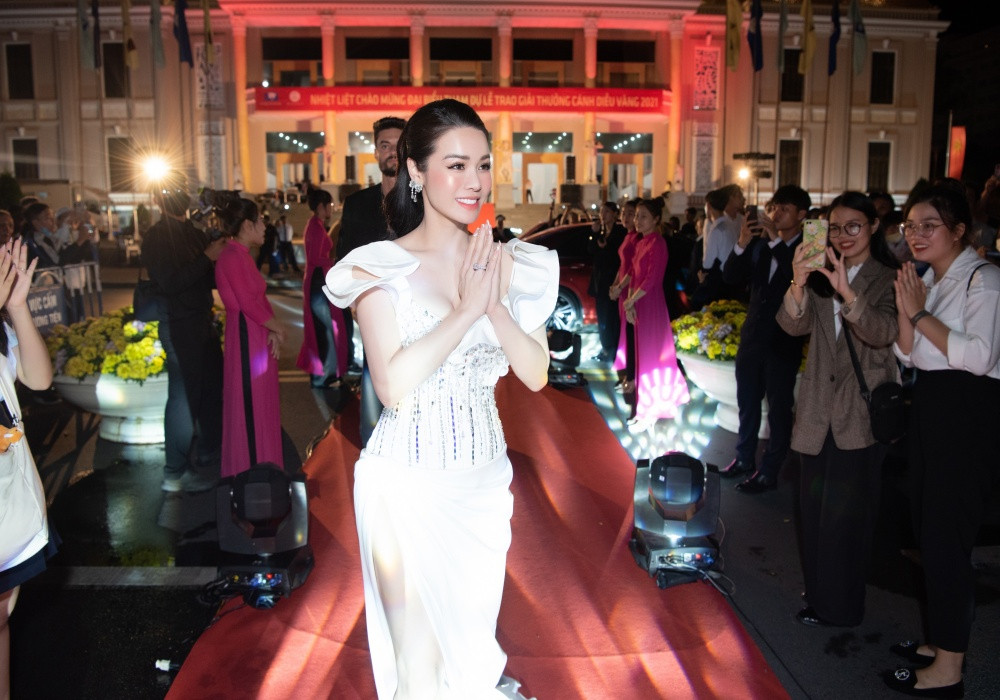 Xuất hiện trong sự kiện trao giải Cánh Diều tối 13/9, Nhật Kim Anh thu hút sự chú ý với bộ váy trắng trễ vai, đính đá với những đường cắt xẻ gợi cảm. Cô có mặt từ sớm trên thảm đỏ để giao lưu khán giả, truyền thông.