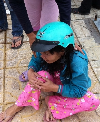 | Vợ anh Kiệt bàng hoàng và thảng thốt trước cái chết của chồng |