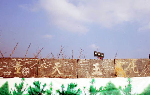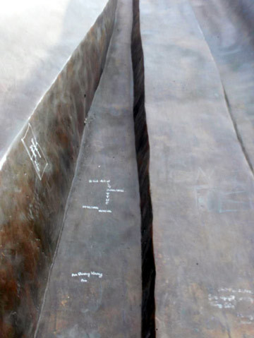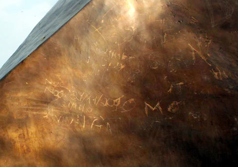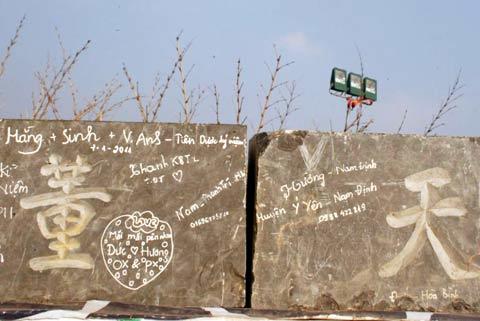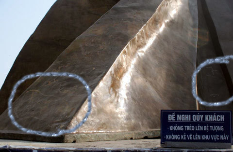 Trên thân tượng đài xuất hiện những dòng chữ thiếu văn hóa. Những dòng chữ, hình trái tim… hết sức phản cảm xuất hiện chi chít quanh thân tượng.
