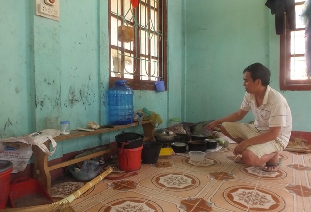 | Các em phải nấu ăn ở dưới sàn nhà |