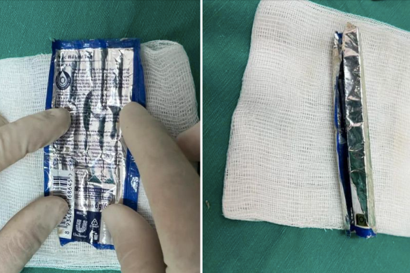 Bác sĩ Bùi Hoàng Thảo, Phó trưởng khoa Ngoại Tiết niệu, đơn nguyên Nam học, Bệnh viện Đa khoa Xanh Pôn, cho biết các bác sĩ chẩn đoán đây là trường hợp dị vật đi vào vào bàng quang gây biến chứng, tổn thương niệu đạo và bàng quang, dẫn đến tình trạng đau buốt tiểu ra máu.