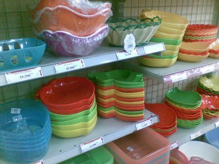 Trên thị trường hiện nay, các vật dụng làm bằng nhựa vô cùng đa dạng, mẫu mã phong phú. Các sản phẩm như bát, đĩa nhựa được các bà nội trợ rất ưa chuộng. Một lí do giải thích cho việc đồ nhựa “chiếm lĩnh” thị trường đó là giá thành khá rẻ, dùng lại bền, tiện lợi.