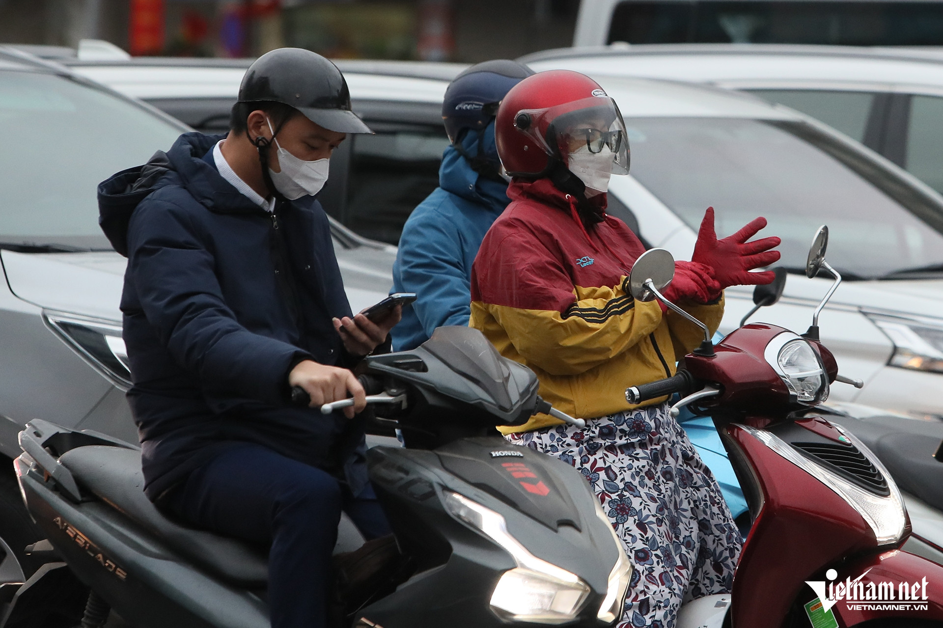 Nhiều người trang bị găng tay, khẩu trang, khăn... để chống rét. Chị Nguyễn Thị Huyền (quận Hà Đông) cho biết rất bất ngờ vì nhiệt độ giảm sâu và nhanh như vậy.