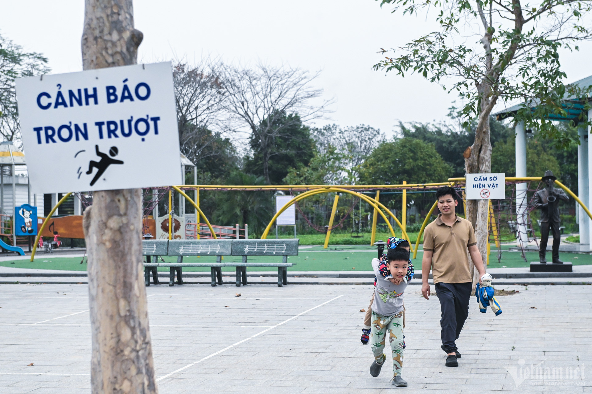 Chị Dương (cư dân sống gần công viên) phàn nàn, khu vực sân chơi cho trẻ có treo biển cảnh báo nguy hiểm khiến mọi người không hiểu nguy hiểm ở chỗ nào.