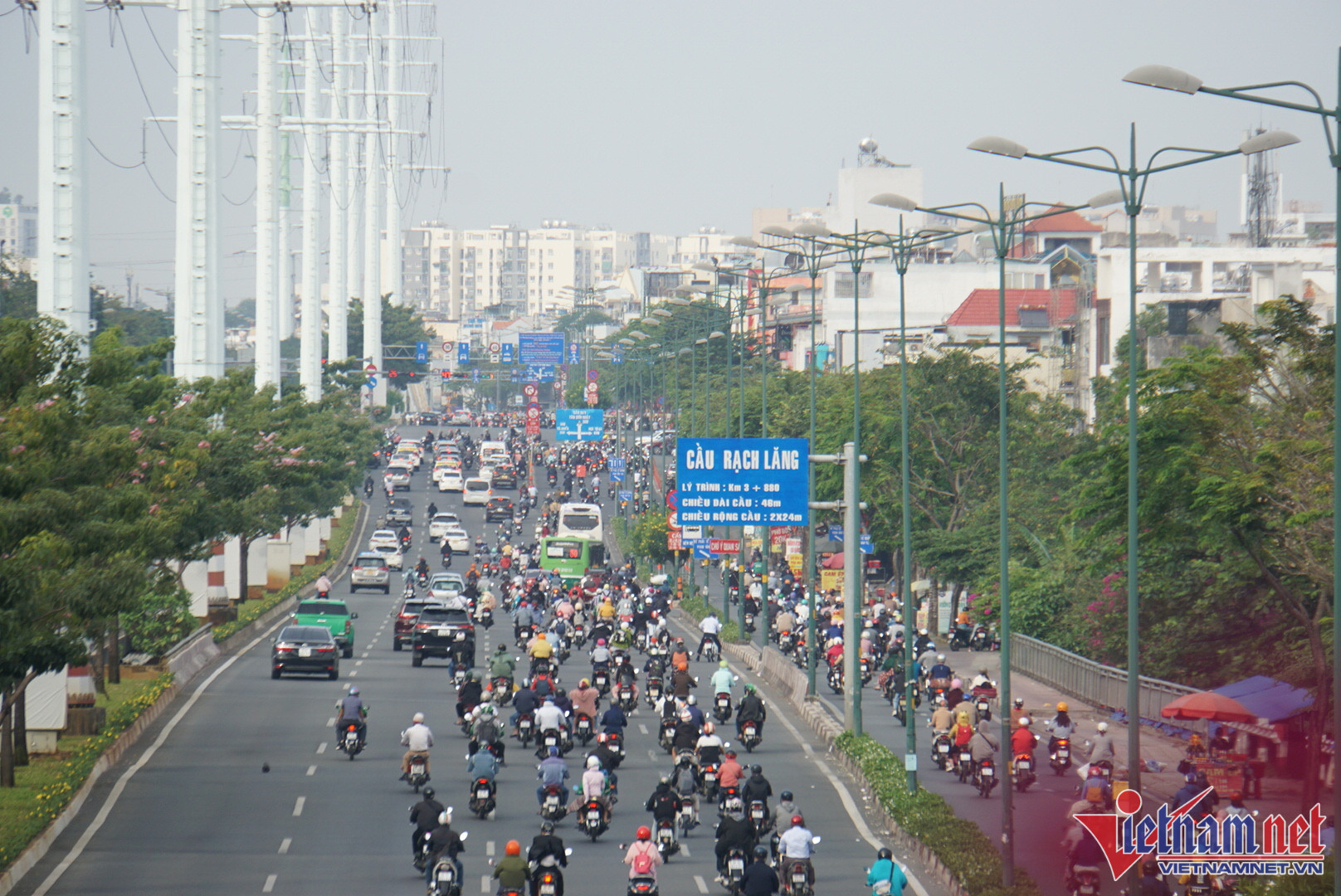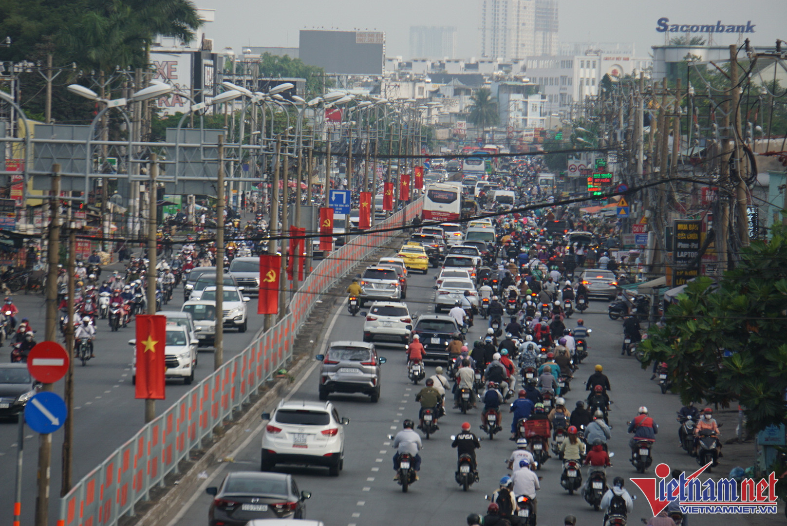 Từ sáng sớm, phương tiện đổ ra đường khá đông đúcĐường Nguyên Kiệm (quận Gò Vấp) thời điểm 7h sáng, ô tô xe máy xếp kín mặt đường Người dân nhích từng mét trên đường đến nơi làm việc, trường học trong ngày đầu tuần của năm mới Đường Hoàng Minh Giám đoạn qua công viên Gia Định cũng xảy ra ùn ứ xe kéo dàiÔ tô xe máy xếp hàng dài dưới chân cầu Bình Lợi (TP Thủ Đức) để di chuyển vào trung tâm Nhiều người điều khiển xe máy leo lên vỉa hè để di chuyển khiến tình hình giao thông thêm rối loạnTuy nhiên, ghi nhận nhiều trục đường huyết mạch như Quốc lộ 13, Trường Chinh- Cộng Hòa, Xa lộ Hà Nội, Đinh Bộ Lĩnh qua Bến xe Miền Đông về Điện Biên Phủ được xem là điểm nóng ùn tắc, nhưng giao thông sáng nay lại khá thuận lợiTrong ảnh, xe máy, ô tô di chuyển thuận lợi hướng từ Quốc lộ 13 qua cầu Bình Triệu để vào đường Đinh Bộ LĩnhTuyến đường Đinh Bộ Linh qua bến xe Miền Đông khá thông thoáng. Mỗi dịp sau Tết của những năm trước, đoạn đường này thường xuyên xảy ra ùn tắc giao thông kéo dàiTương tự, nút thắt cổ chai trên đường Đinh Bộ Lĩnh đoạn giao với đường Chu Văn An về Bạch Đằng (quận Bình Thạnh) sáng nay thông thoáng bất ngờĐường Phạm Văn Đồng thời điểm 7h30 sáng, xe máy, ô tô lưu thông thuận lợi trong tiết trời tại TP.HCM se lạnh Vòng xoay Điện Biên Phủ thời điểm hơn 8h sángĐường Điện Biên Phủ hướng vào trung tâm TP.HCM thông thoáng. Hai bên đường hoa kèn hồng bung nở khoe sắc xuân tạo không khí vui tươi trong những ngày đầu năm mới