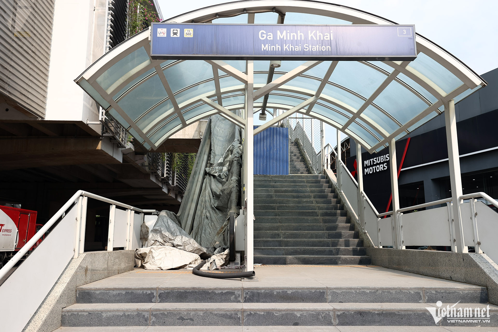 Tuy nhiên cũng trong chiều 5/8, bên ngoài một số nhà ga dọc tuyến vẫn được phủ bạt, xung quanh khá nhếch nhác.