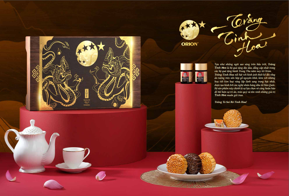 Theo đại diện Orion Việt Nam, xuất phát từ sự cảm mến văn hóa sum họp gia đình, quây quần mỗi mùa Trung thu, công ty đã lên kế hoạch phát triển sản phẩm bánh riêng biệt cho mùa lễ quan trọng này. Bánh Trung thu 2023 của Orion gồm 4 bộ sản phẩm quà tặng: Trăng hân hoan, Trăng chân tình, Trăng tâm giao, Trăng tinh hoa, mang dấu ấn của sự "chân tình" thông qua sự tập trung chăm chút tỉ mỉ về mặt chất lượng bánh từ việc lựa chọn nguyên liệu cho tới tạo hình, đóng gói, thiết kế bao bì, thành phẩm.