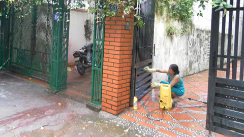Những túi sơn được kẻ xấu ném vào nhà ông Thẳng đã bắn lên cả tường nhà hàng xóm. Ngay sau đó, vụ ném sơn đã được chủ nhà trình báo cho công an phường Dư Hàng Kênh.