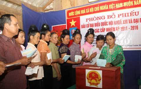 | Cử tri các dân tộc xã Huổi Một (Sông Mã, Sơn La) thực hiện quyền lợi, nghĩa vụ của mình. Ảnh: Ngọc Tuấn |