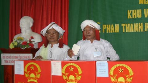 Đồng bào Chăm ở xã Phan Thanh, huyện Bắc Bình, tỉnh Bình Thuận thực hiện quyền công dân. Ảnh: Quân Quân |