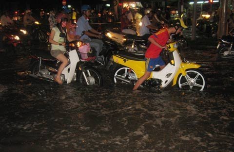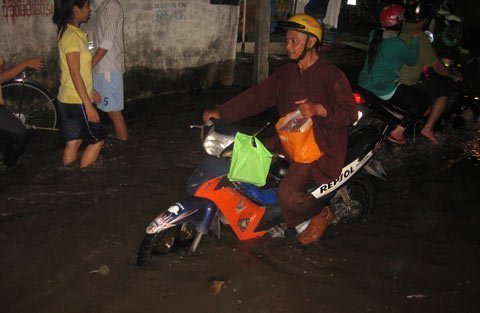 mỗi sáng sớm và chiều tối. Tuy nhiên, nhiều người vẫn phải dắt bộ vì nước ngập