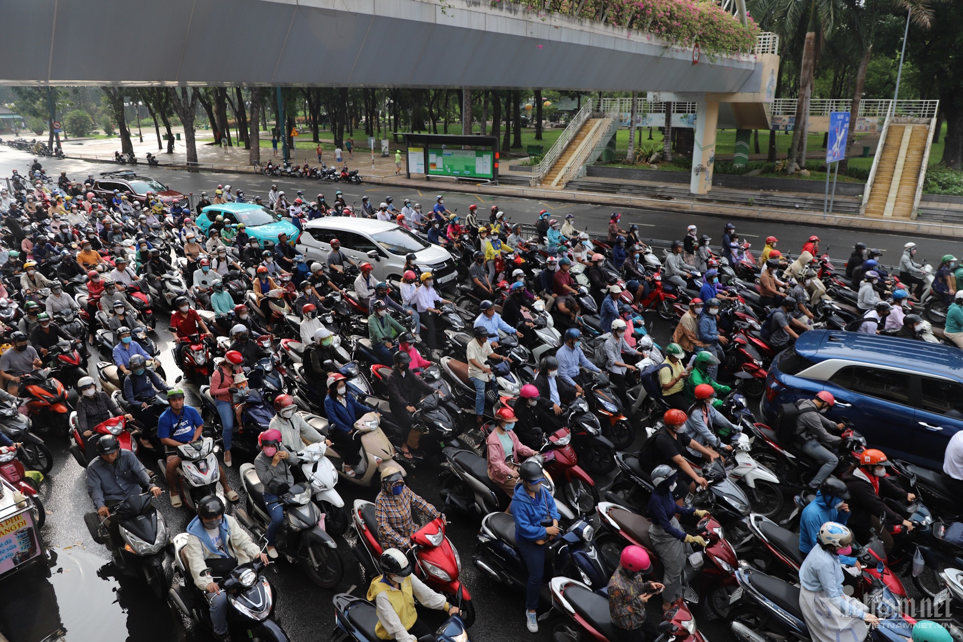 Trận mưa kéo dài vào khung giờ cao điểm trong buổi sáng đầu tuần khiến nhiều tuyến đường ùn tắc nghiêm trọng.