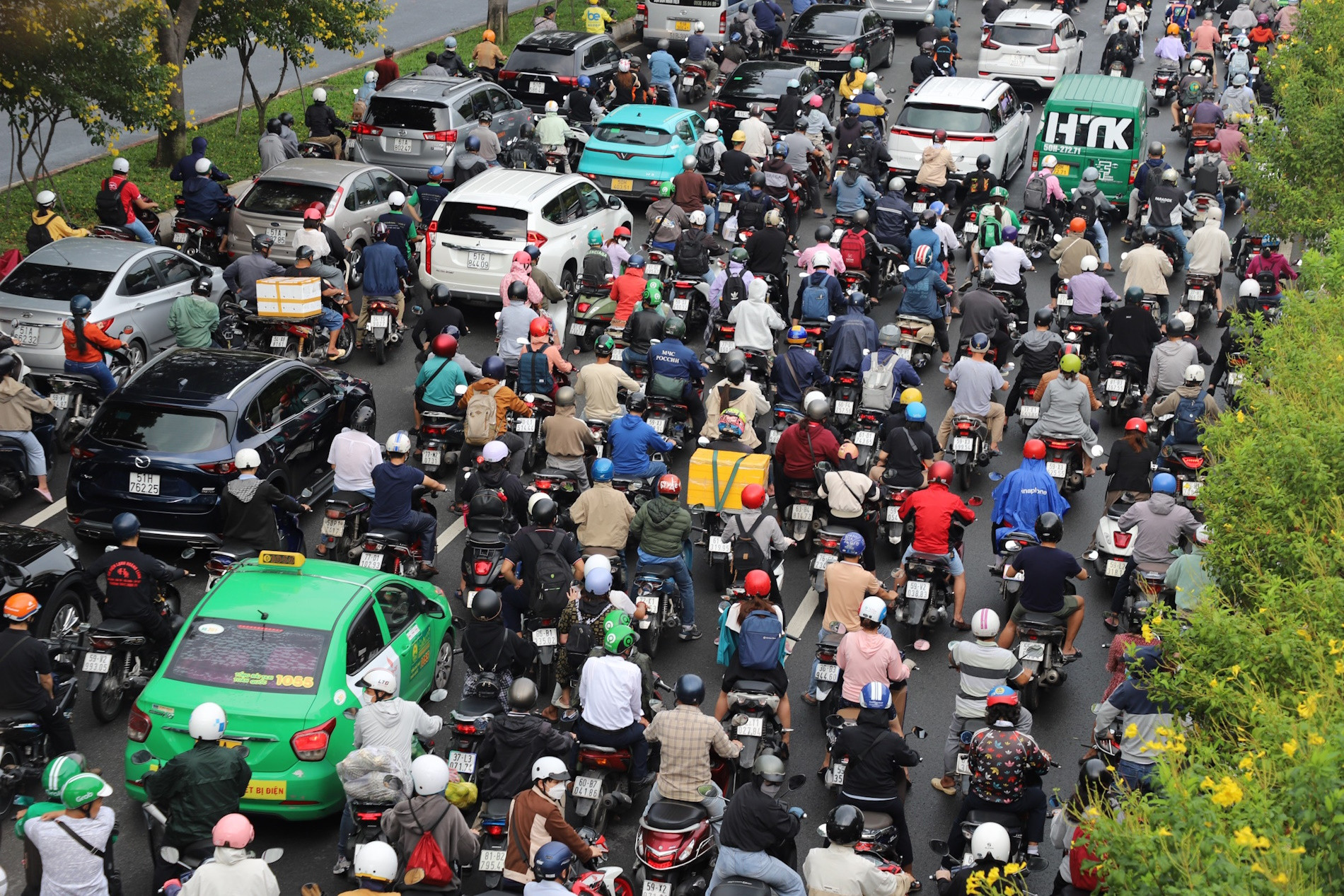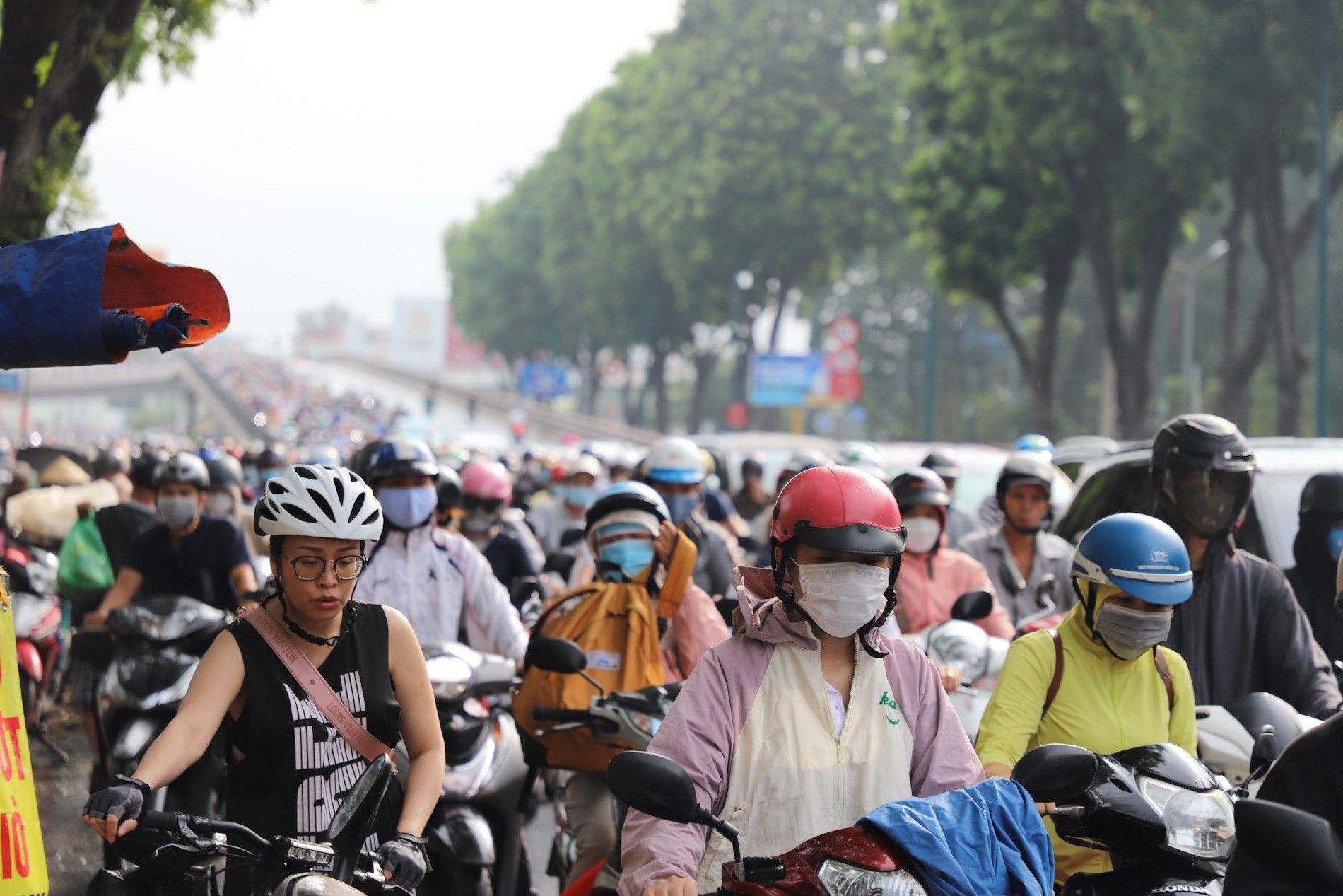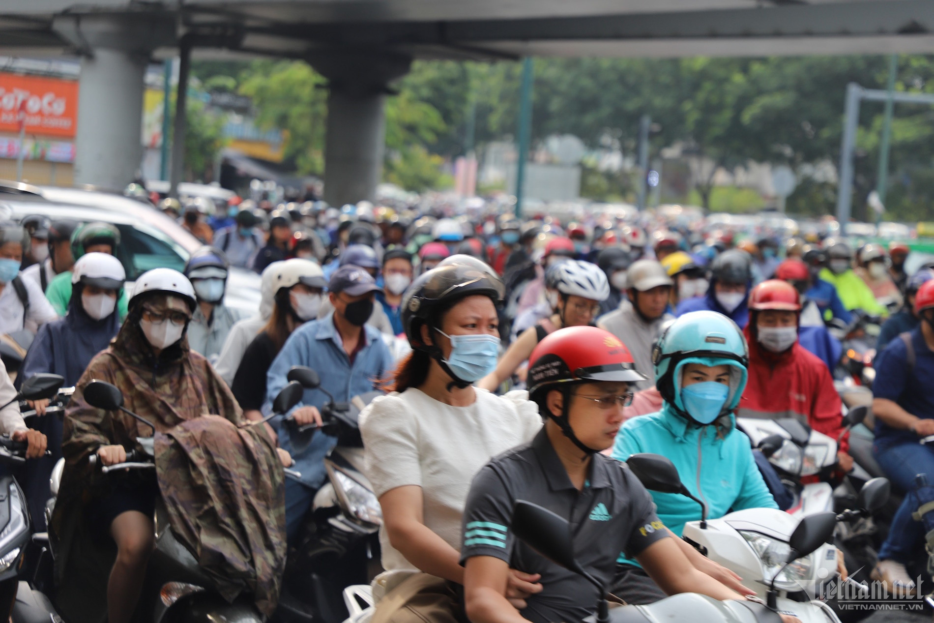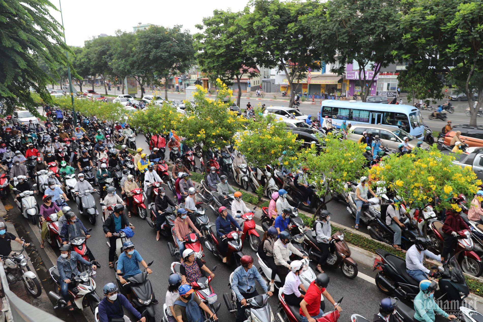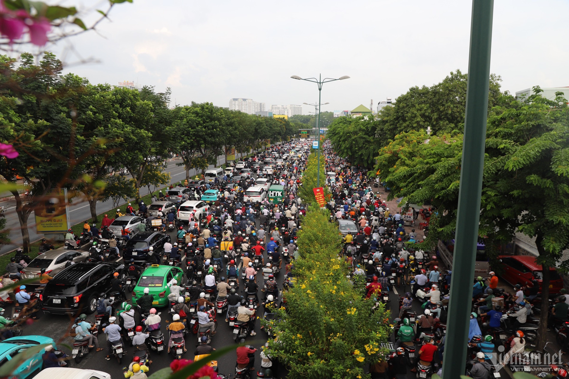 Lúc 8h, tại các tuyến đường cửa ngõ đi trung tâm hay sân bay Tân Sơn Nhất đều xảy ra ùn tắc nghiêm trọng, như đường Phạm Văn Đồng, Nguyễn Kiệm, Hoàng Minh Giám...