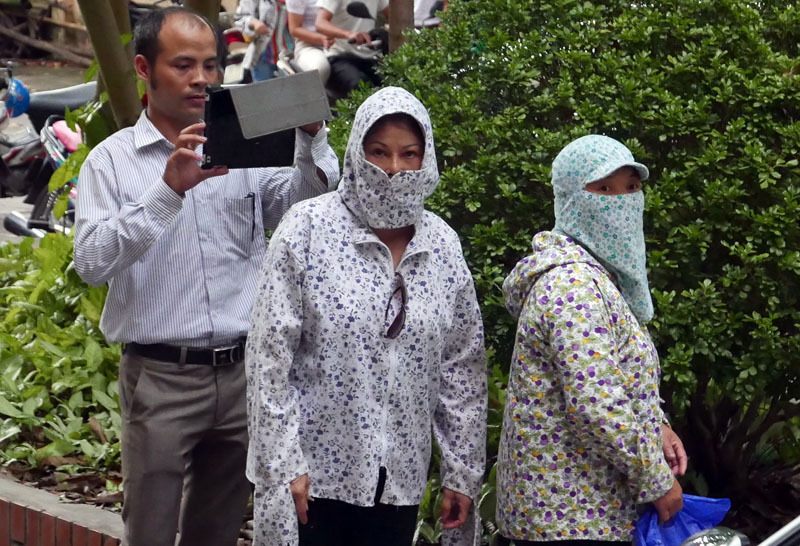 | Bà Chiến, vợ ông Chấn cũng đến xem diễn biến phiên tòa. |
