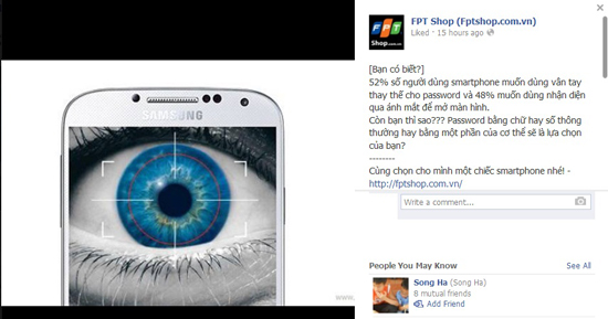 Một thống kê được FPT Shop công bố cho thấy 52% số người dùng smartphone muốn dùng vân tay thay thế cho password và 48% sẵn sàng dùng nhận diện bằng việc quét võng mạc. 48% là một con số khá cao vì nhiều người nghe thấy nhận diện bằng mắt đã thấy ngại, chẳng hạn như bạn nick Tiêu Duy Phương bình luận: “Sáng sớm mới thức dậy mà mở mắt to ra hứng ánh sáng cho nó soi mắt thì hỏng giác mạc sớm”.
