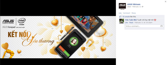 Hoạt động chào Valentine của ASUS chính là chương trình “Cùng ASUS kết nối yêu thương”, với thời hạn là đến hết ngày 14/2. Trong chương trình này, bạn sẽ có cơ hội nhận được bộ đôi Fonepad Note 6 và Fonepad 7.