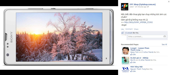 FPT Shop nhắc các khách hàng rằng đang có chương trình giảm giá dành cho chiếc điện thoại Sony Xperia C5302, từ 8.990.000 đồng xuống chỉ còn 7.490.000 đồng. Ngoài ra, nếu khách đặt hàng còn được tặng thêm gói bảo vệ toàn diện 3 tháng của Sony và phiếu mua hàng trị giá 500.000 đồng.