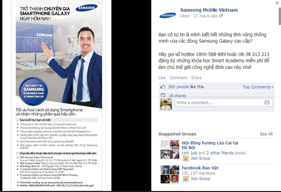 Samsung quảng cáo rộng rãi về khóa học Smart Academy giúp bạn có kiến thức cơ bản về cách sử dụng smartphone. Những điều bạn thu được sau khóa học là thông tin cơ bản và kiến thức sử dụng smartphone, thông tin về các dòng Samsung Galaxy như Note 3, Note 10.1, S4, hay tối ưu cách sử dụng camera và tạo bố cục ảnh trên smartphone.