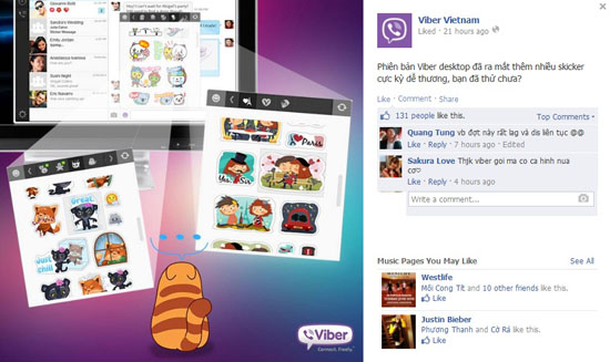 Viber thông báo vừa cho ra mắt thêm nhiều sticker dành cho máy tính để bàn (desktop). Trước đó Viber cũng chiếm lĩnh thị phần máy để bàn khi miễn phí nhiều sticker.
