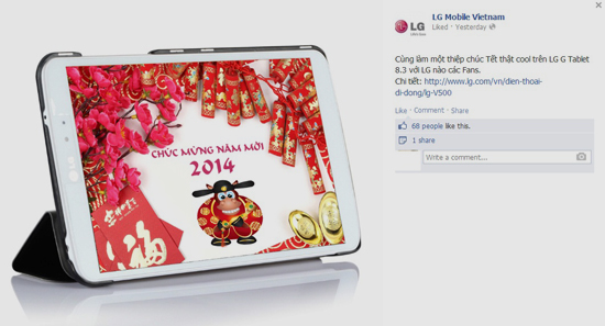 LG gửi lời chúc mừng năm mới tới các khách hàng thân thiết nhưng cũng tranh thủ khoe khéo vẻ đẹp long lanh của màn hình Full HD IPS trên chiếc máy tính bảng LG G Tablet 8.3.