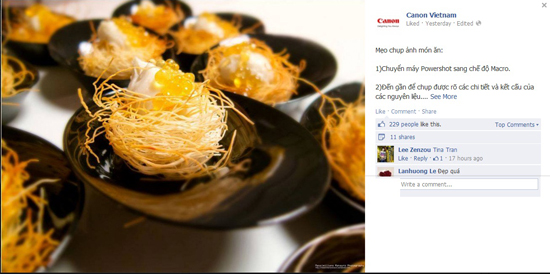 Canon đang bày mẹo chụp ảnh món ăn cho các fan và đó sẽ là những hiểu biết cần thiết khi Tết đang đến gần với mâm cỗ ê hề. Một số mẹo cần đặc biệt lưu tâm có chuyển máy sang chế độ Macro và chụp ảnh ở góc độ thấp để tránh tạo cảm giác thức ăn quá bằng phẳng, không hấp dẫn.