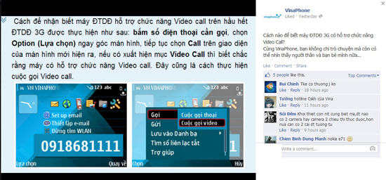 VinaPhone khá tận tình khi hướng dẫn cặn kẽ khách hàng cách nhận biết điện thoại 3G nào hỗ trợ chức năng Video Call (gọi điện kèm video), bằng cách bấm số điện thoại cần gọi, chọn Options (Lựa chọn) và xem có mục Video Call hay không.