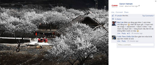 Hôm nay Canon dành thời gian hướng dẫn kỹ thuật hậu kỳ, cụ thể là bày cho các thành viên fanpage 2 cách tạo ra những bức ảnh đen trắng ấn tượng với một vài điểm nhấn màu sắc. Cách thứ nhất, trên Photoshop ta chọn lệnh Ctrl + U để bỏ những màu hồng không muốn có như trong ảnh trên. Cách thứ hai, cũng trong Photoshop, ta nhân bản ảnh thành 2 lớp (layer), chuyển lớp 2 bên trên sang đen trắng rồi mới xóa những phần muốn để màu hồng.