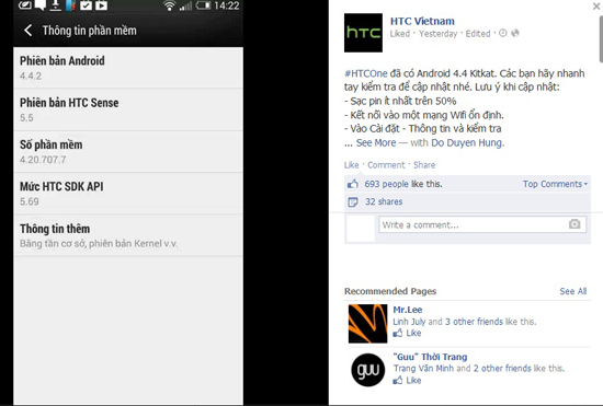 HTC thông báo chiếc điện thoại HTC One đã có bản cập nhật hệ điều hành lên Android 4.4 KitKat. Ngoài ra, HTC còn hướng dẫn tận tình các bước kiểm tra khả năng cập nhật.