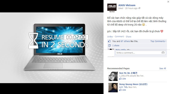 ASUS thể hiện sự tự tin về một chức năng ưu việt của các dòng máy tính của mình, đó là chức năng trở lại chế độ làm việc bình thường từ chế độ sleep chỉ trong 2 giây. Khi được đố, nhiều fan cũng trả lời được đó là chức năng Instant On.